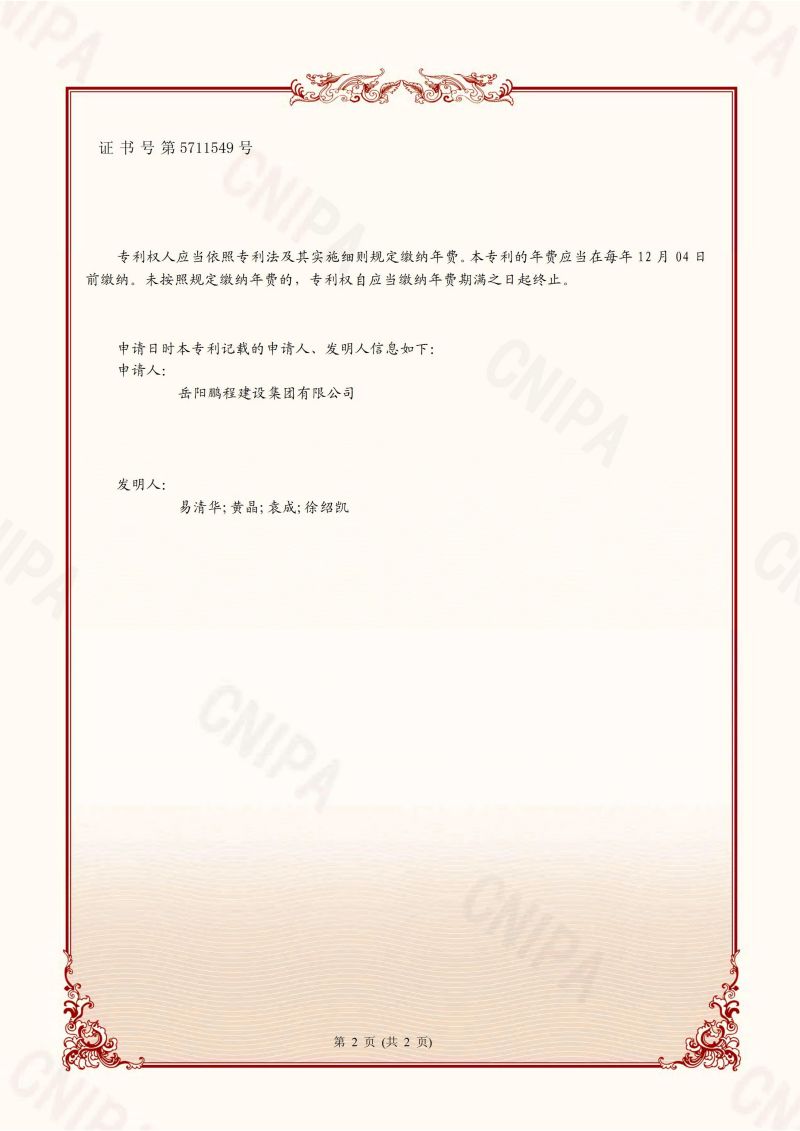 一種墻體抹灰施工設(shè)備-發(fā)明專利證書(易清華、黃晶、袁成、徐紹凱)_00