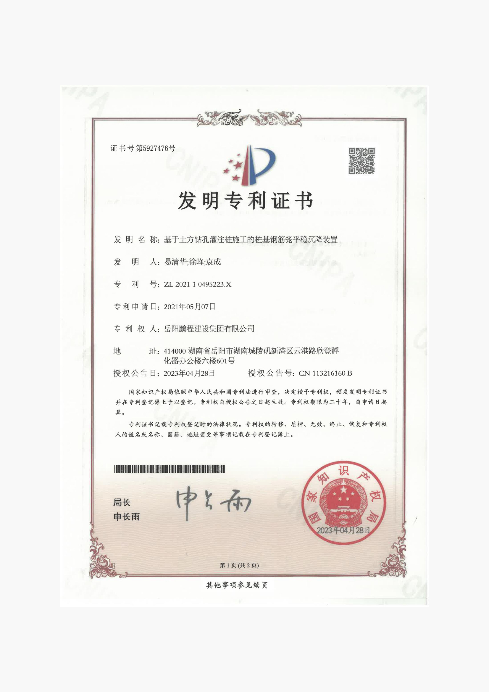 基于土方鉆孔灌注樁施工的樁基鋼筋籠平穩沉降裝置(易清華、徐峰、袁成)